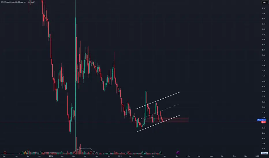I have been playing this structure on AMC for weeks now hoping to catch a moon ticket to the next liquidity zone. The red box is the 236 retracement of the last two high lows. As long as its above this box, I have a bullish outlook. It has to bounce or fall here so I am playing this shit tight. Loading calls and taking profits early to get to runners for the ride. I am out if it loses 2.79