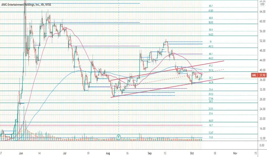 AMC gapped down from 44.20, fell to around 34.40 and currently has 39.30 as a major resistance point. AMC is now trading in 39.30 and 34.40 trading zone.