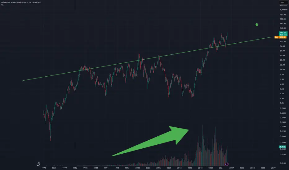 I like the volume chart on AMD on this Monthly timeframe, with a consistent growth curve.