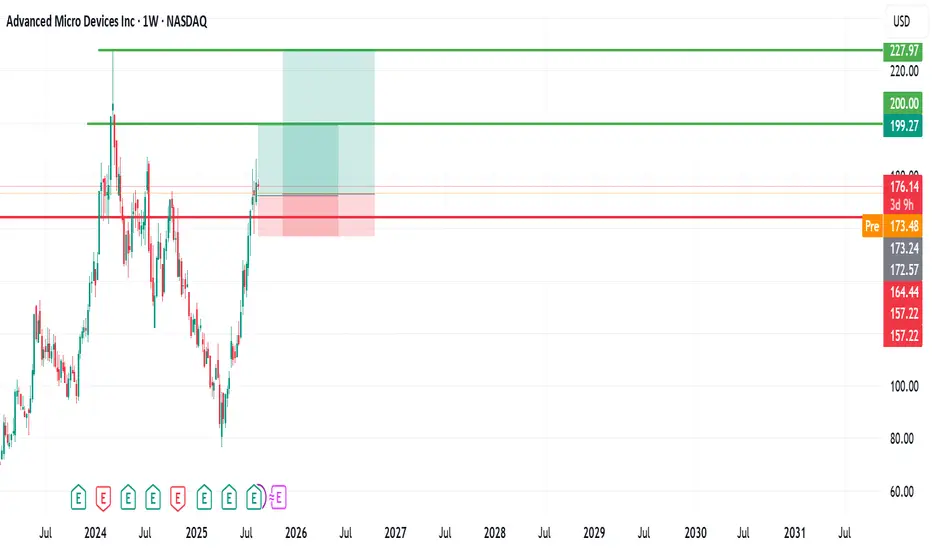 I remain bullish on AMD with entries from $176 - $172 and anticipate a potential move toward the $200 level, with a longer-term target around its all-time high near $226.