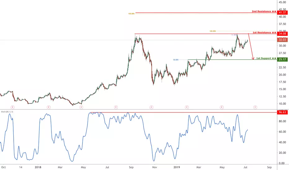 AMD reversed off its resistance at 34.08 where it could potentially drop further to 25.17.