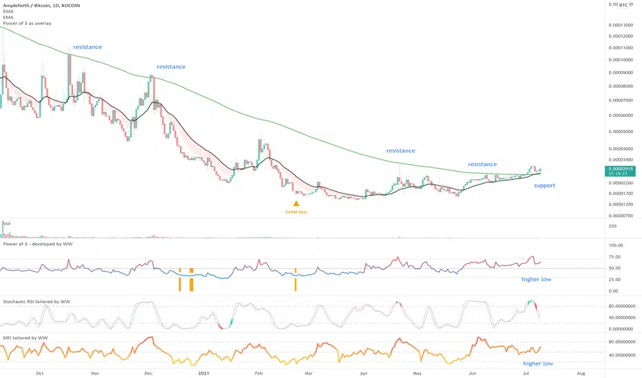 This is a tricky one. Price action has broken through the 21-week EMA (green line) to find support after months of resistance, gains are almost certain. I say it’s a tricky cause holding this token means you’re exposed to daily rebalancing of token supply. A positive return in only guaranteed if market capital / demand is increasing rather than token price.