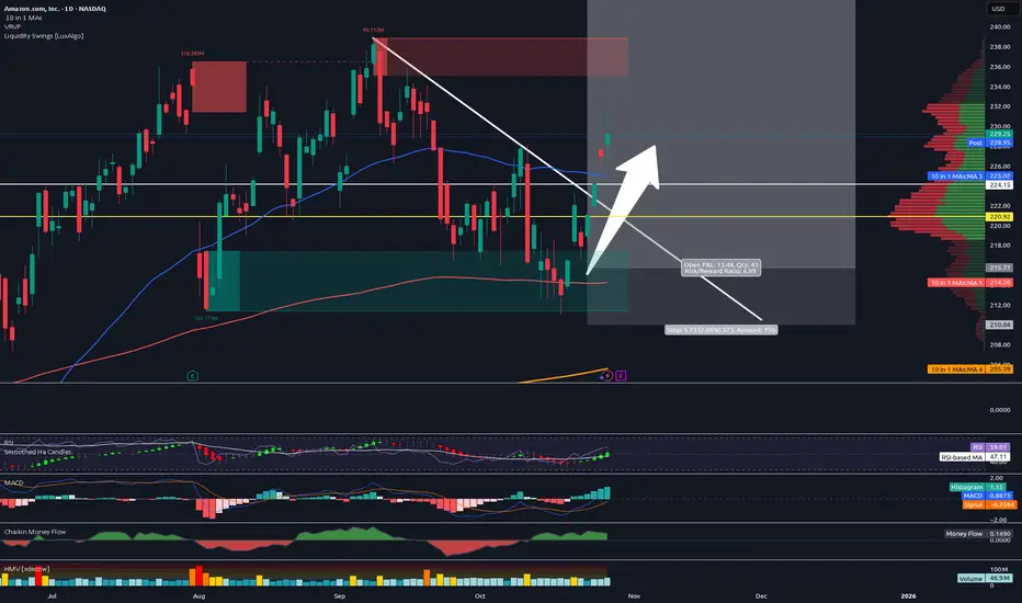 We are halfway to my final target. I've been trading safe lately. So, I decided to sell half here, capture some profit, and raise my stops to $225, ensuring we're all in the money on this trade.