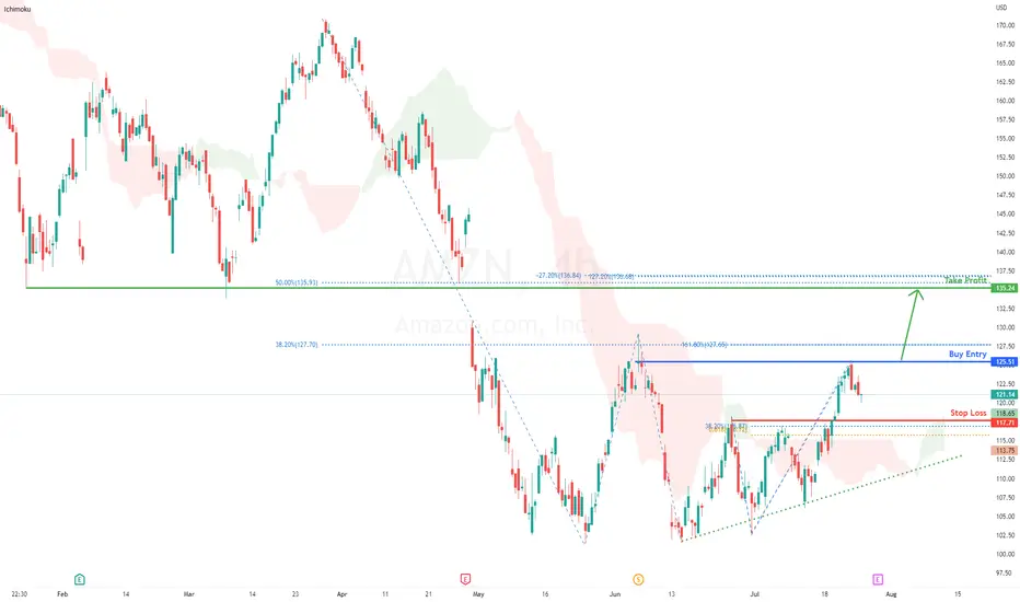 On the H4, with prices moving along the ascending trendline and above the ichimoku indicator, we have a bullish bias that prices will rise to buy entry at 125.51 where the swing high resistance, 38.2% fibonacci retracement and 161.8% fibonacci extension are. Once there is upside confirmation that price has broken buy entry on the upside, we would expect bullish momentum to carry prices to take profit at 135.24 where the overlap resistance, 50% fibonacci retracement , -27.2% fibonacci expansion and 127.2% fibonacci extension are. Alternatively, prices could drop to stop loss at 117.71 where the pullback support, 38.2% fibonacci retracement and 61.8% fibonacci projection are.