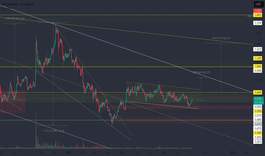 📌 Breakout to the upside may confirm a bullish pennant, with the first target around 0.64 and further potential toward dynamic resistance near 0.94. That could trigger a broader recovery.