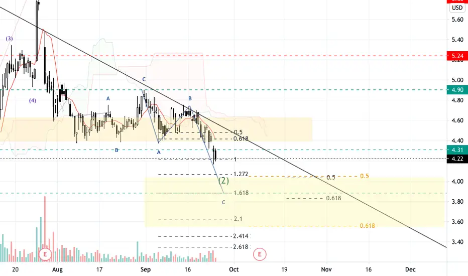 Trading plan: start accumulating at $4.22 and add if she reaches downside targets $4, $3.80 and $3.50 into earnings.