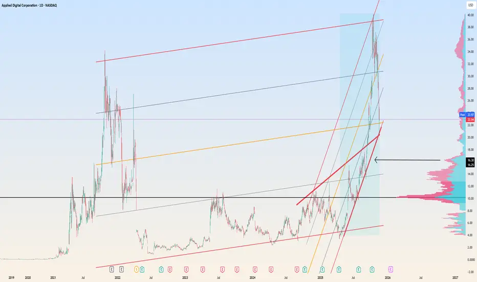 22 looks perfect from every possible way. 50% of LT channel, intersection two rising trendlines. hope it doesn't break down from 22 then we looking at 16 where first major volume comes in