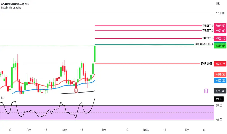 #APOLLOHOSP Can Seen Strong Buying Above 4833 Only As Per CPR & RSI Calculation .