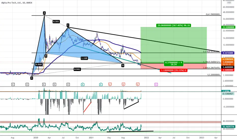 We have Bullish Divergence on MACD and RSI near the bottom of a Descending Broadening Wedge Pattern at the PCZ of a Bullish Gartley in Logscale.