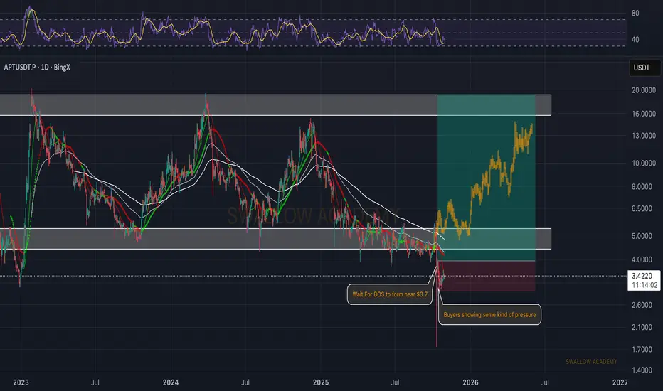 APT buyers are starting to show some pressure again, but we’re still waiting for a proper BOS to form around the $3.7 area. That would be the first real sign that buyers are taking back control.