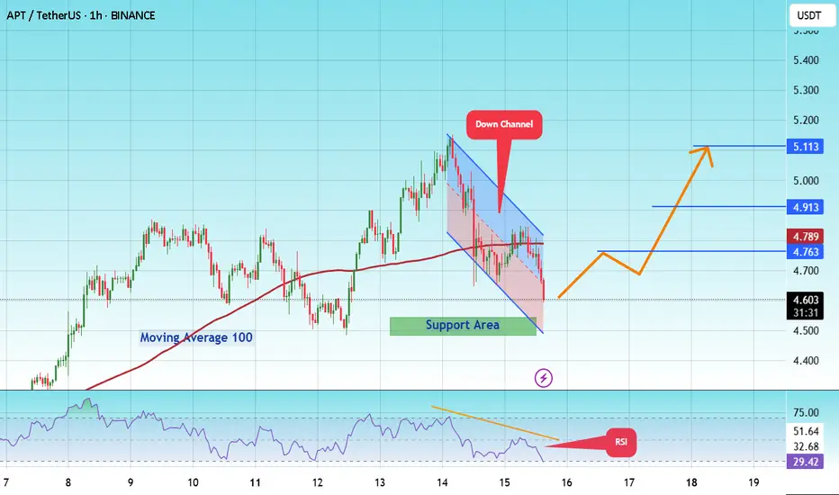 We have a support area at the lower boundary of the channel at 4.54, acting as strong support from which the price can rebound.