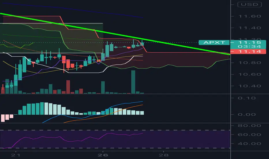 We talked about a long position gettinf added around 11$ a few days or a week ago. I did that. Next area to watch is 11.23 gettinf support. So far we passed our red cloud resiatnce on the 1hr which is great. Main resistance line that follows up throughout this whole downtrend sits at 11.20. Watch for a breakout of that 11.23 area and a confirmed hold. Not to FSR off should break that soon but we will see. Should give APxT a nice momentum run!