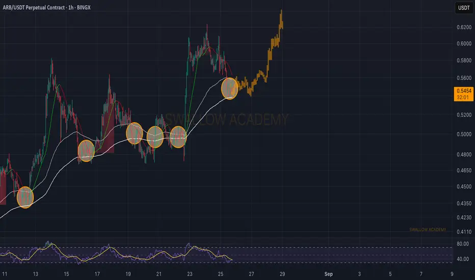 Keeping it very simple on ARB, where our key zones are both 100 and 200 EMAs, which usually have been acting as zones of trend reversal.