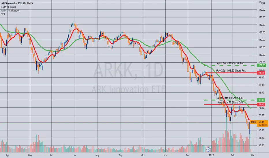 Comments: There isn't much extrinsic left in the deep in-the-money short put, so rolling it out to May to collect additional credit and reduce cost basis further. Total credits collected of 25.86 on what is now a 24.22 inverted with a break even of 76.36 relative to where the underlying is currently trading at 65.37.