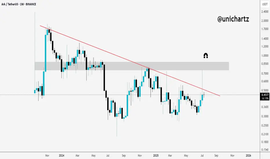 If we get a clean breakout and weekly close above it, there’s a good chance we’ll see a move toward the marked resistance zone above.