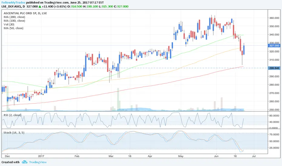 Looking at a possible long on ASCL. We saw strong rejection from just above the 300 area which coincides with the 200ma. Financials look good. The only concern I have is the move up was on weak volume, could be a bull trap so ideally I want to see a further move up on high volume.