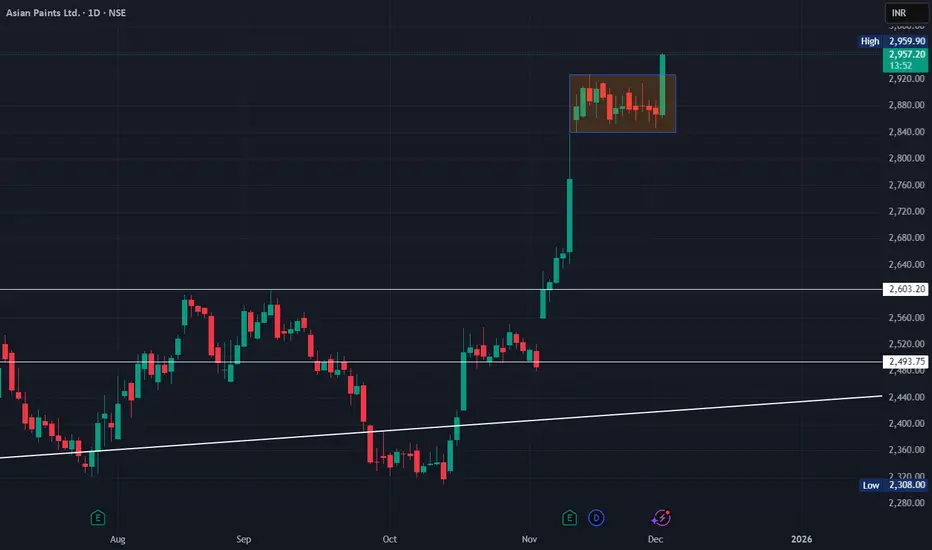 Asian Paints, looks good a strong buy from bottom then in consolidate phase and now Clean Breakout 🎉