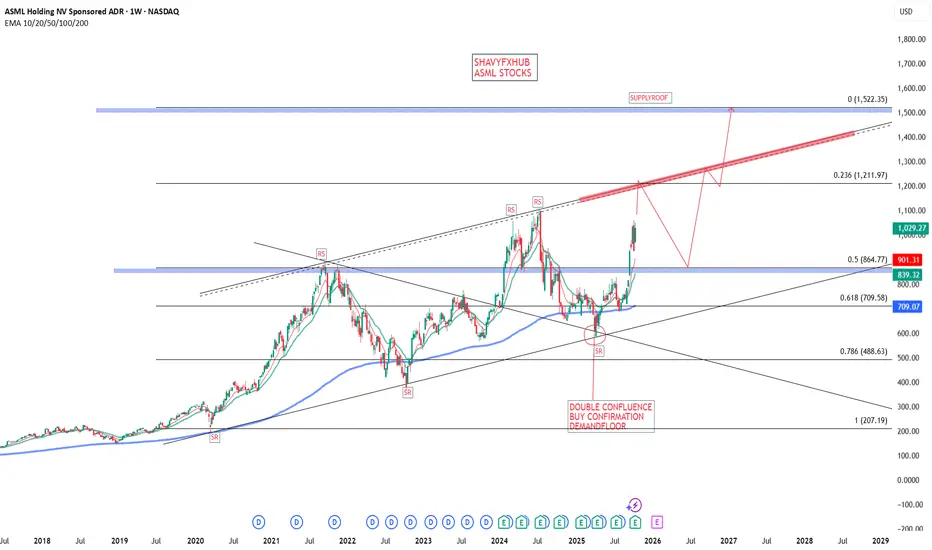 the rally started from 579.34 demand floor protected and currently closed at 1029.27 and a fall back retest into a broken supply roof will make 864.77 and an ideal position for any investor looking to go long on ASML STOCKS .the reward on this long could be surge exceeding 1211.97 and final take profit 1522.35 which all represent respective levels of supply roof and resistance to upswing.