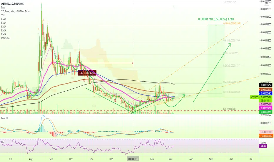 After the massive bull run AirSwap (ASTBTC) had back in 2020, what followed was a 4.5 months long correction that found a low on January 3, 2021...
