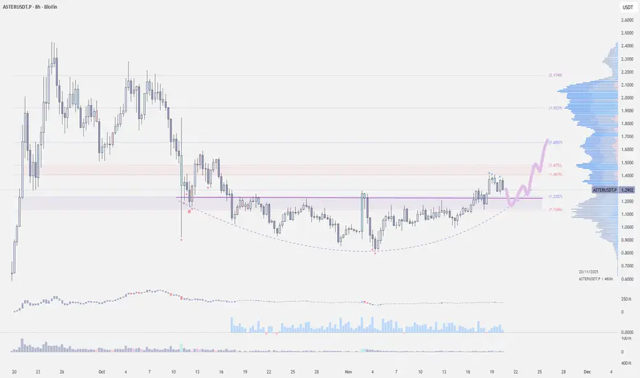 ASTER is forming a basin-bottom structure here. If price can hold and flip the 1.20–1.18 zone into support, the broader structure stays constructive.