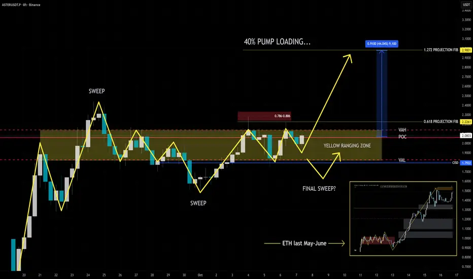 Check out the smaller ETH chart on the lower right side. ASTER is now making similar moves by sweeping and taking liquidity on both buy and sell side before high probability continuation upwards.