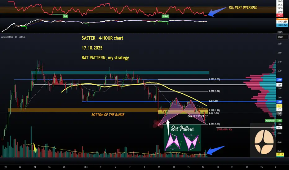With BAT patterns, the text-book way to trade them is to open a position at the bottom of the right 'bat-wing', so immediately around $1 and set stop loss roughly 2% below the left 'bat-wing' ($0.93-$0.95).