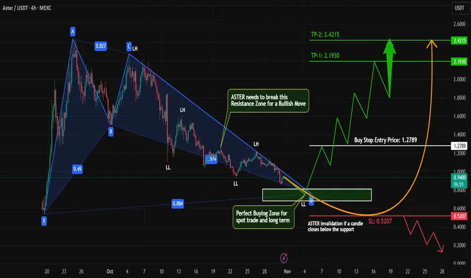 What’s your view on #ASTER? Do you think it’ll bounce from the harmonic completion zone or break out early? Drop your thoughts below!