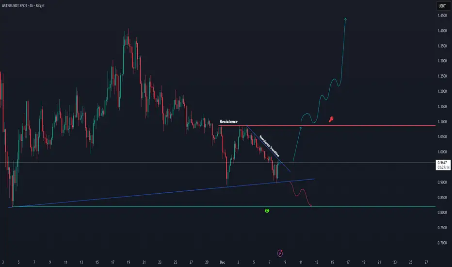 🔥 If ASTER can break above the trendline and push through the resistance zone, momentum could flip bullish quickly and trigger a strong continuation move