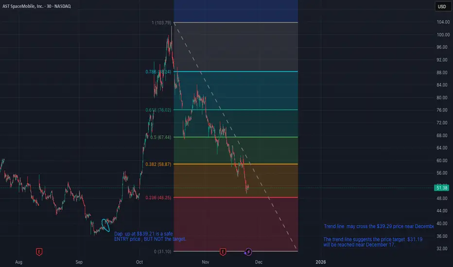 The gap between $31.19 - $32.25 ($1.06 gap) from June 6 - June 9, 2025. This gap is the lowest gap that I will consider buying. The gap is on target to be filled near December 17, 2025. ASTS is launching satellites on December 17. If the launch is successful the price is likely to rise with positive news.
