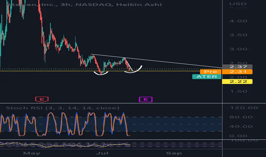 I’m liking 2.23 and 2.13. If we can hold and contiue our move up here stops below 2.20. Watch for last entry 2.13 stops below that either one of these could be a great entry. Stoch rsi over sold and flipping up as well as potential bottoming pattern here that may not be very tight but a W pattern could form here and send us flying. 2.63 is the next resiatnce to watch breaking and holding that could break fences I g triangle and start forming the w pattern better. Can also see this W on a weekly too so could be very powerful. Wouldn’t hang around in this for more then a few days if nothing occurs but I think we could see a big move here soon might be worth being patient in it for a few days if it wants to pull a 50% move