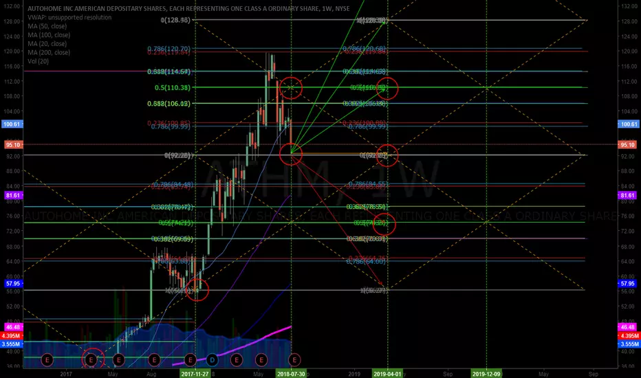AUTOHOME (ATHM) Weekly chart, price target hit, mid quad support, earnings in 6 days, on high watch