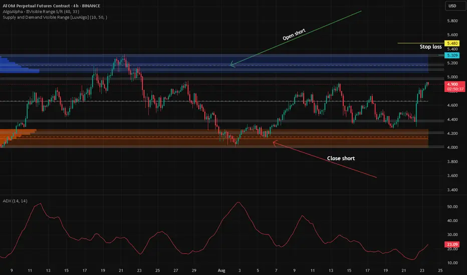 4H ADX currently at 23, indicating a modest trend but favouring range-bound trading strategies.