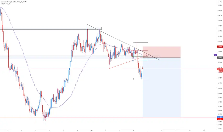 Consolidating structure breakout, expecting a pullback to retest ascending TL in confluence to the 0.618 fib retracement and previous S&R area. Strong zone of confluence overall with the MA50 supporting the bearish momentum.