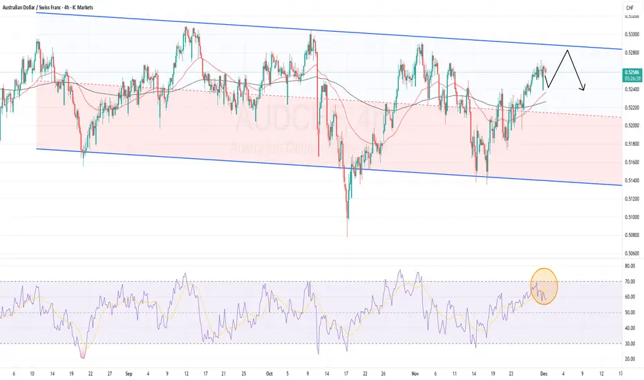 AUDCHF is forming a potential sell setup. The pair has been respecting the regression channel on the 4-hour chart for some time.