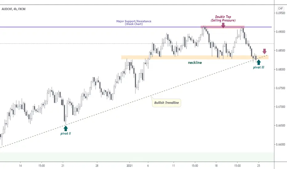 Even though we are generally in an uptrend, there are shreds of evidence that Buyers might have lost the steam that brought them this far as we await significant breakdown of neckline @ Fr0.68250 for confirmations that support Bearish bias.