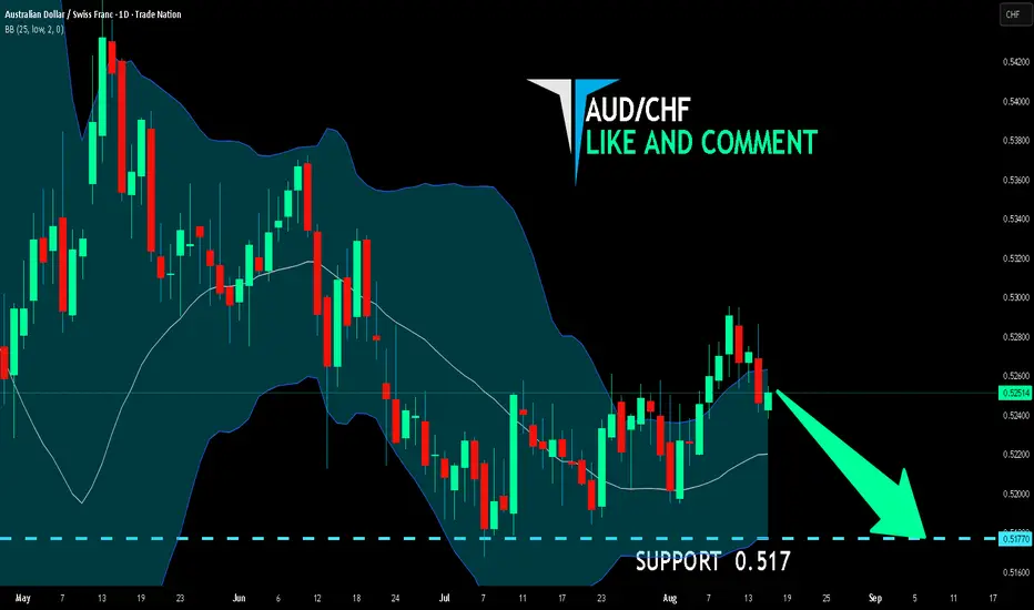 AUD/CHF is making a bullish rebound on the 1D TF and is nearing the resistance line above while we are generally bearish biased on the pair due to our previous 1W candle analysis, thus making a trend-following short a good option for us with the target being the 0.517 level.