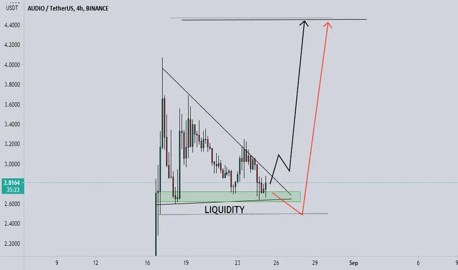 AUDIO has provided us with a nice correction on the daily timeframe to the 0.5 Fib, on the 4hr timeframe we can see price is now consolidating in this bullish pennant formation and i do expect to see the continuation to the upside. From a entry perspective we have two options we can either enter on the break and retest above the descending trendline, or if the price breaks below the support and removes all the liquidity of the buyers who have entered early and have there stops below the pattern, then we can look for a entry confirmation once the stops are removed.