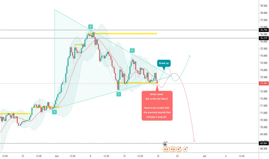As you can see, the triangle pattern broke down. But is this the fakey? We need to be careful with the previous bearish that includes a long tail. When we have the trusted structure to confirm the price is going to break down or up, let set the position. Good luck to you! 🤓