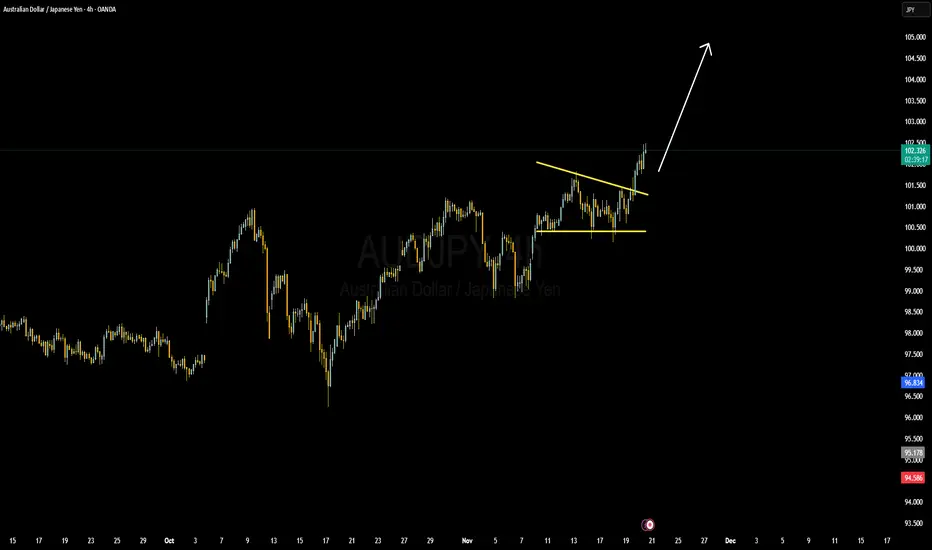 Overall, as long as price remains above the breakout level and the fundamental divergence between the two central banks persists, AUDJPY has the potential to sustain further upside. Professional traders will continue watching price reactions on retests and market volume to secure profitable continuation entries as the bullish trend develops.