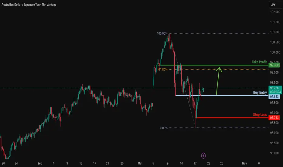 AUD/JPY has bounced off the support level, which is a pullback support and could rise from this level to our take profit.