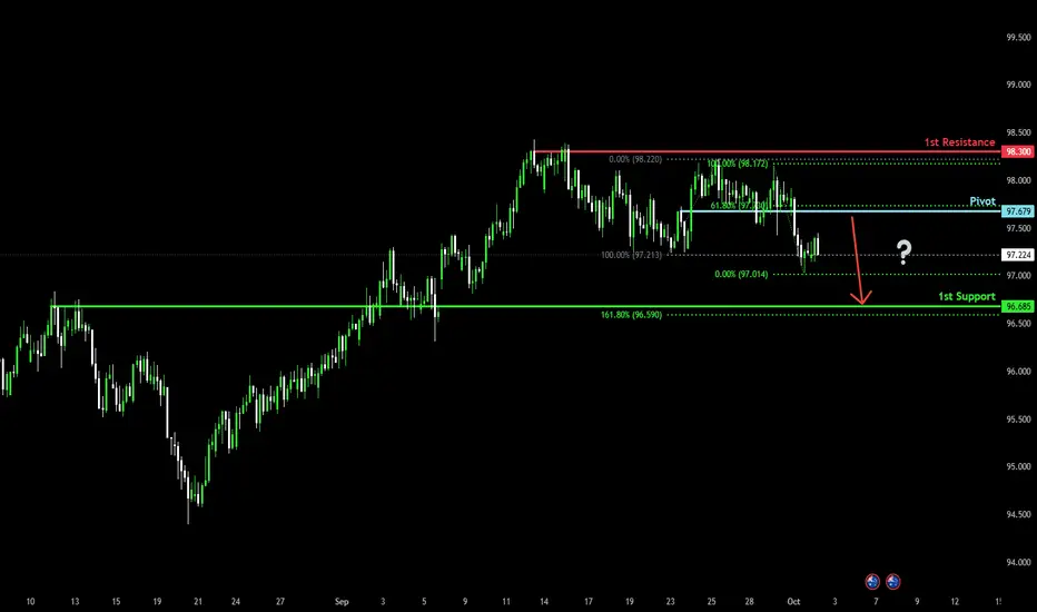 AUD/JPY is rising towards the pivot which has been identified as a pullback resistance that lines up with the 61.8% Fibonacci retracement and could reverse to the 1st support ,which is an overlap support.