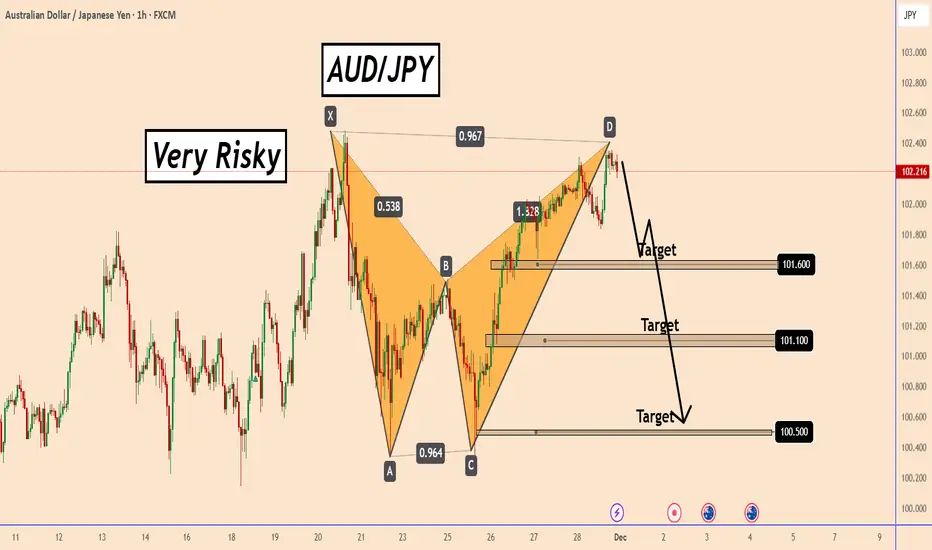 AUDJPY has completed a clear bearish pattern; however, it remains a very high-risk trading setup.
