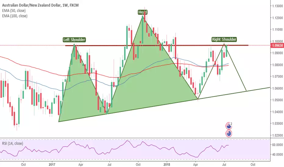 Possible formation of a head and shoulders pattern on the AUDNZD on weekly chart. Buying momentum decrease in lower time frames confirming resistance. Wait for proper sell signal on weekly to enter trade.