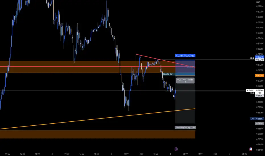 -Sell in Bearish Breaker (TF5M) Area with range 0.67099 - 0.67124 according to the confirmation that will occur.