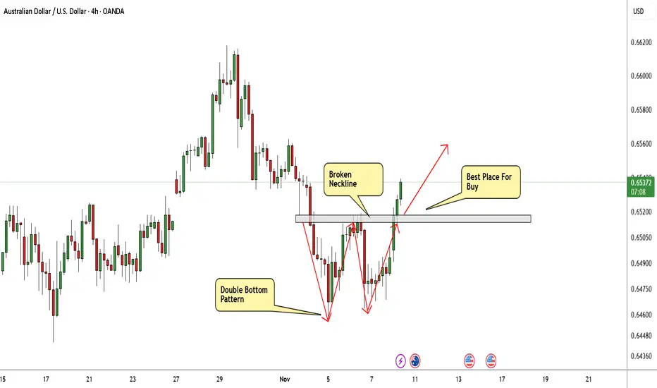 AUD/USD Made Clear Reversal Pattern,Long Setup To Get 150 Pips !