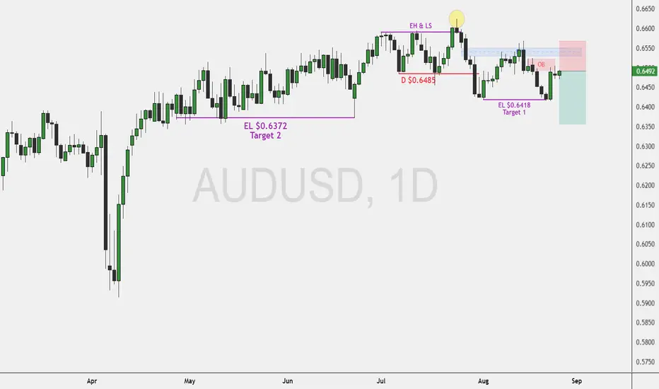 FenzoFx—AUD/USD formed new lower lows and lower highs after it was displaced by closing below $0.6485. Interestingly, the pair created equal lows at $0.6418. This indicates the trend should be considered bearish, and liquidity is present below $0.6418.