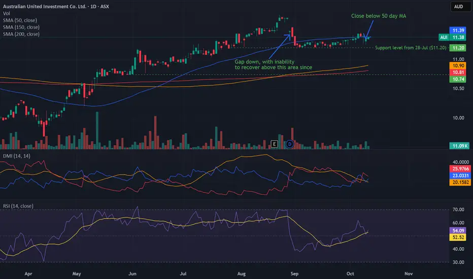 AUI along with swing of DMI indicator towards bearishness and RSI downwards, and