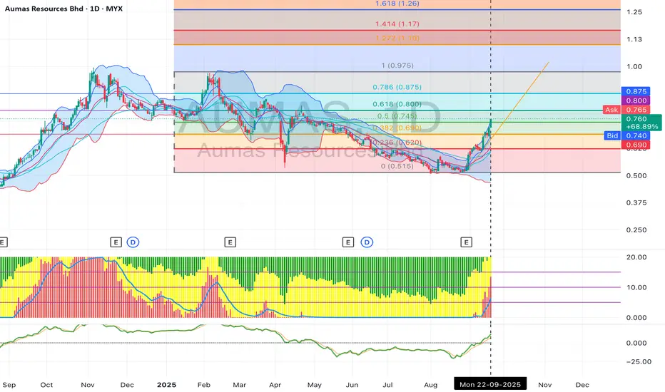 From the chart we see that the trend has change to uptrend and will go uptrend nicely with minor pullback and healthily going uptrend.next target is BO:0.8,TP:0.875,SL:0.69