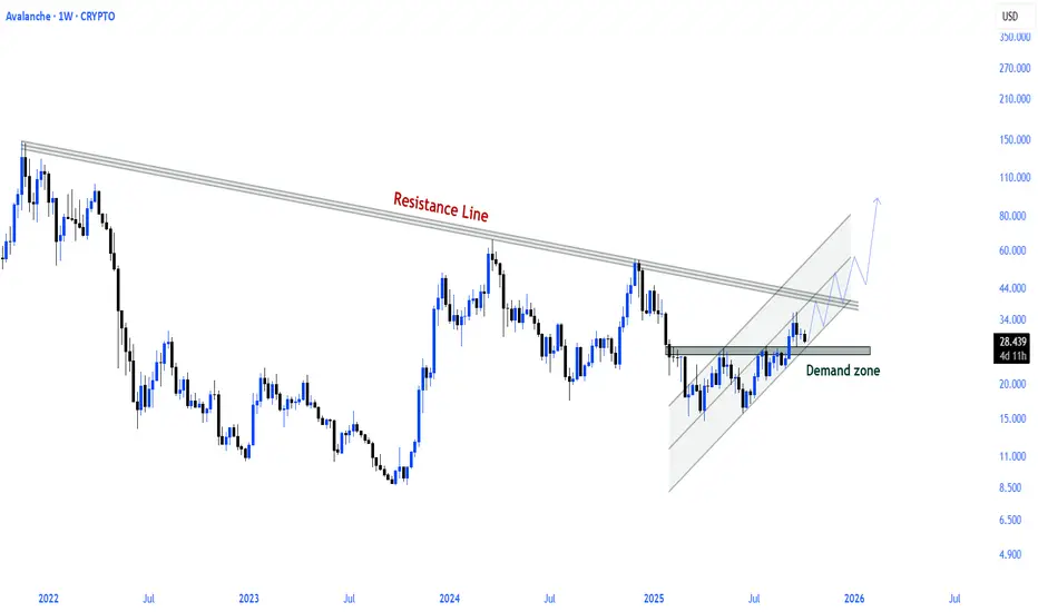 AVAX is trading below the long-term descending resistance line on the weekly chart.