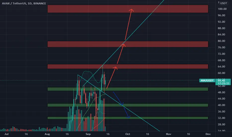 The buying force still exists at 50$ zone and if it doesn't lose this zone, AVAX could move up to 64$, 78$ and 100$ in this September and early October. But if it loses the 50$ zone, AVAX will move down to 40$ or even 32$ zone